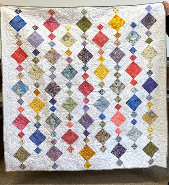Second Place Prize – Chandelier a machine quilted throw size quilt
