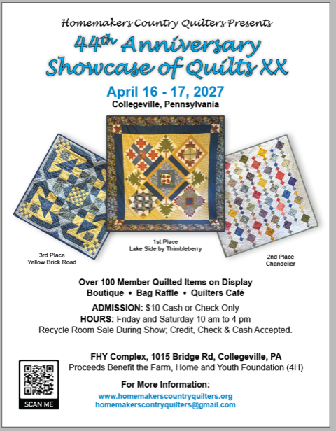 Every two years, our members show their creativity and skill at the Farm, Home and Youth Center, Collegeville, Pa. Our next show will be in Spring, 2027.